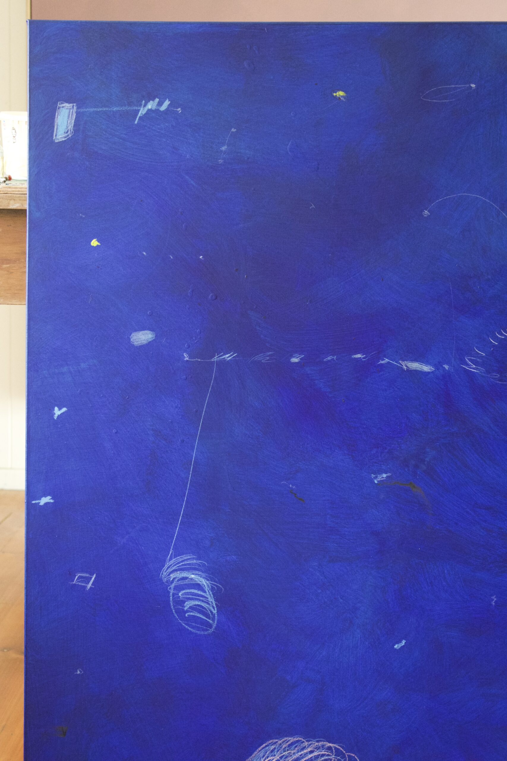 Acrylic, House Paint, Oil Pastel and Pencil on Canvas