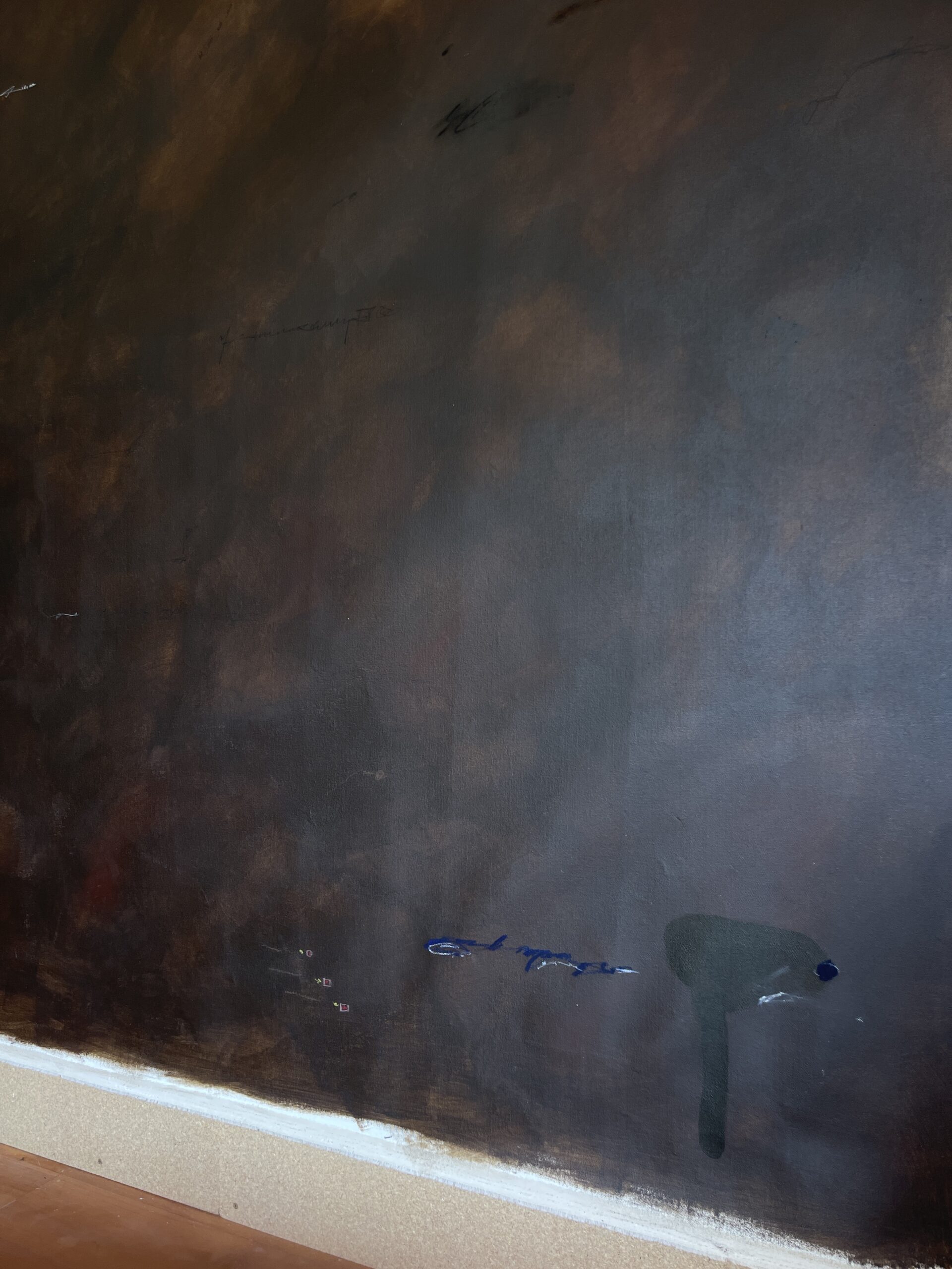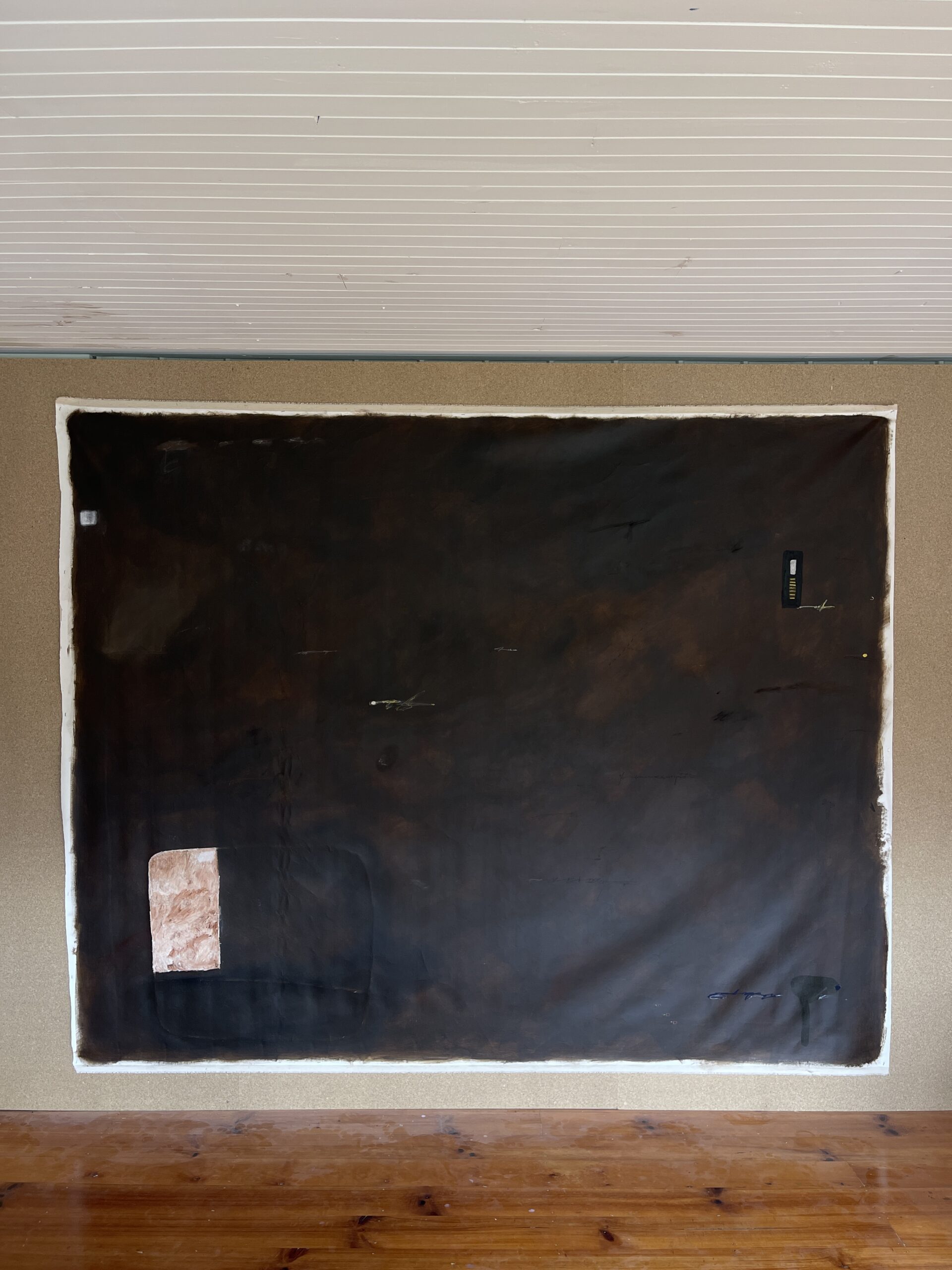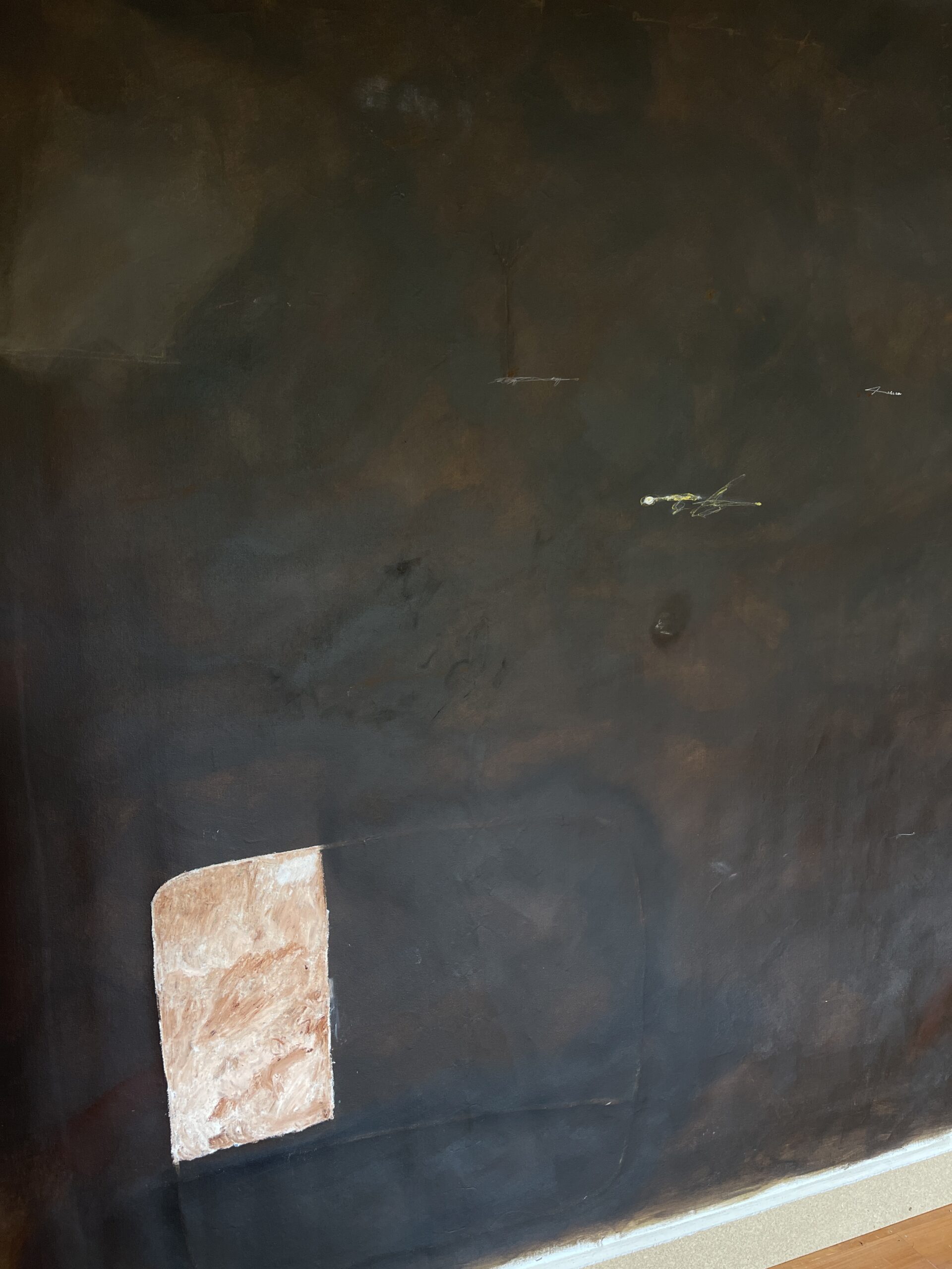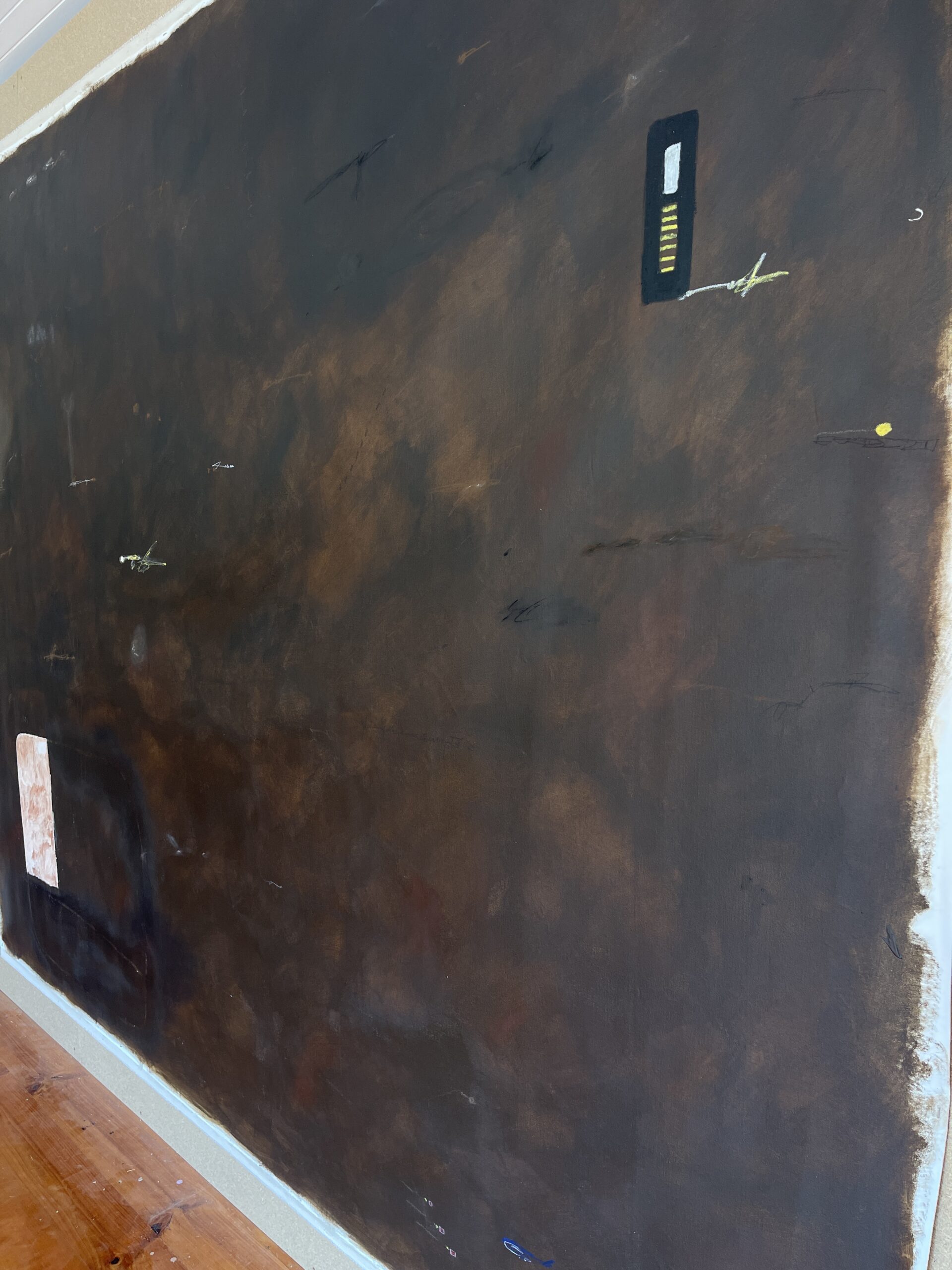 Acrylic, Charcoal, Oil Pastel and Pencil on Unstretched Canvas