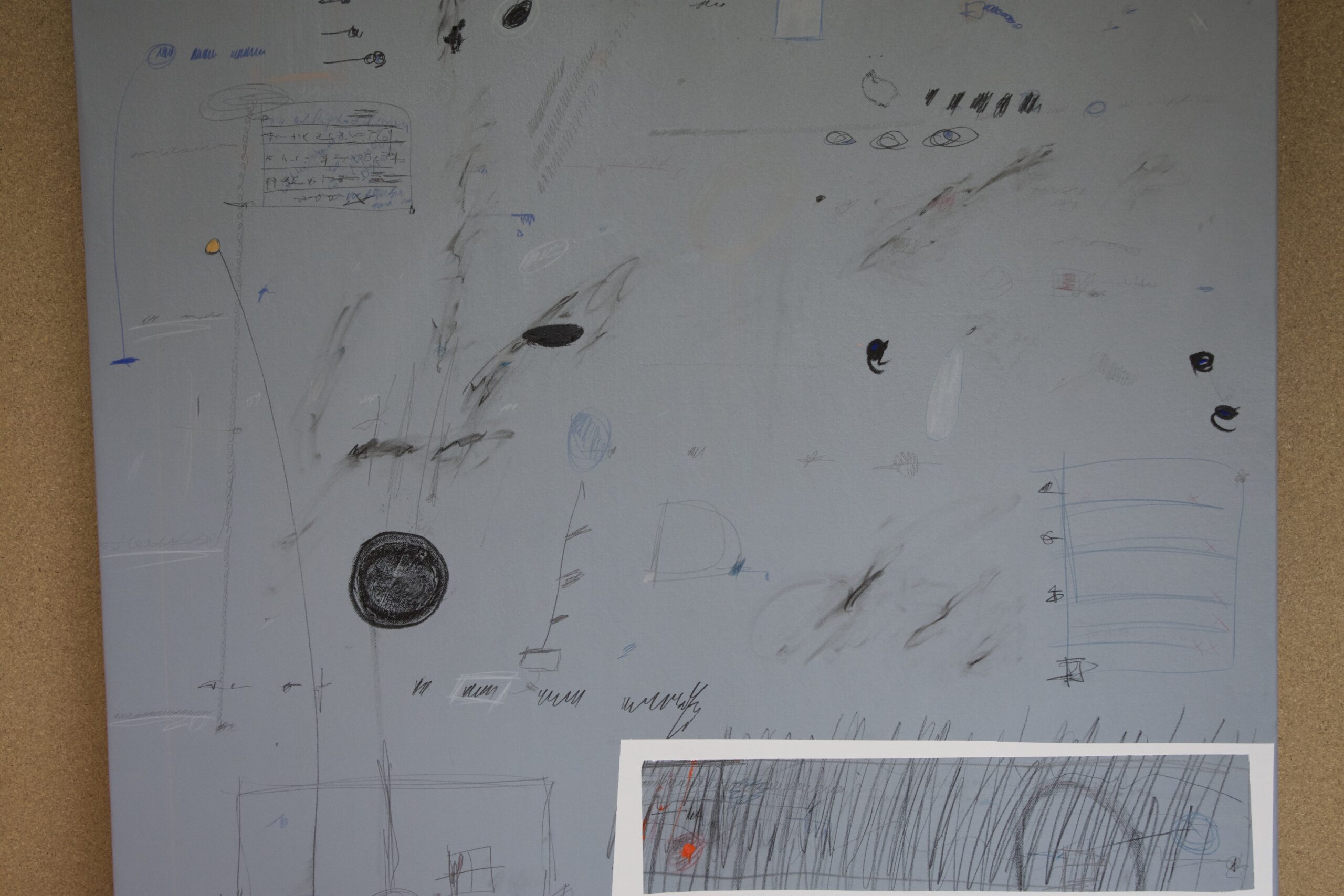 Acrylic, Oil Pastel, Charcoal and Pencil on Canvas